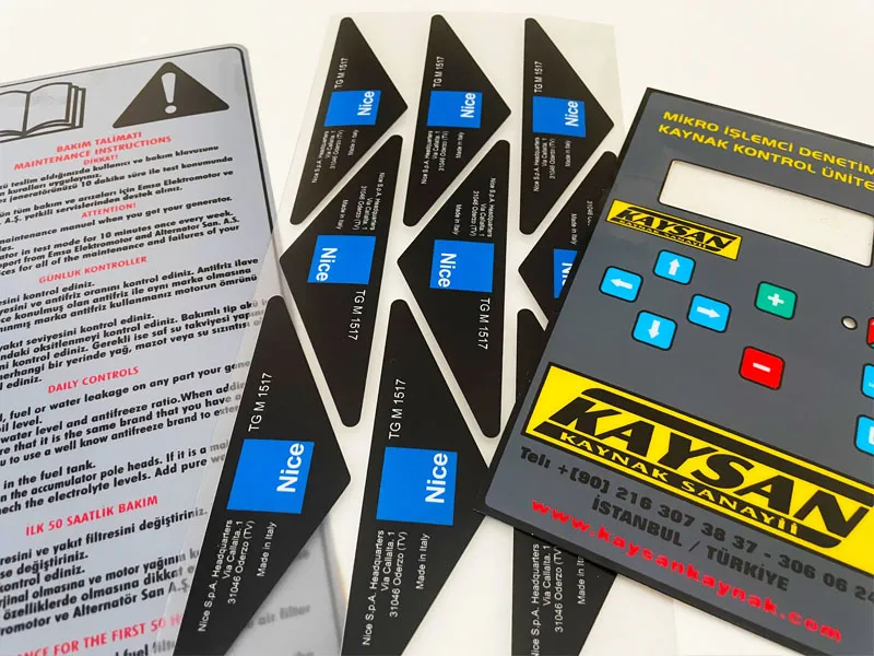 0,15 mm’ den, 1,5 mm’ye kadar kalınlığı olabilen Leksan Panel ve PVC Etiketler, özellikle elektronik sanayiinde bolca kullanılmaktadırlar. Bu etiketlere baskı arka yüzeyden uygulandığı için ön yüzden boyanın kazınması, silinmesi ve çıkması söz konusu değildir. Leksan etiket ve panellerde çok renkli baskılar uygulanabilmektedir. Kendinden yapışkanlı değillerdir. Yapışkanı özeldir ve baskı sonrası uygulanmaktadır. Bu sayede etiket uygulanacağı yüzeye çok güçlü bir şekilde tutunabilmektedir. Dış etkenlere karşı dirençlidirler. Su ve güneş gibi faktörler etiketi etkilemez. 120 °C ‘ye dayanıklı olan çeşitleri vardır. Bu etiket ve paneller, baskısından kesimine kadar firmamız bünyesinde üretilip, kaliteden ödün vermeden en uygun fiyatla ve en hızlı bir şekilde müşterilerimize ulaştırılmaktadır.
